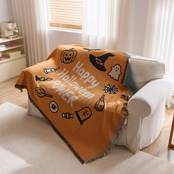 Mới tùy chỉnh thiết kế Halloween dệt tấm thảm bí ngô ma mèo sofa bìa đa chức năng chăn