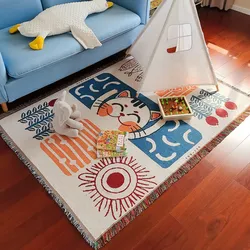 Bắc Âu Cotton Polyester Pha Trộn Ngoài Trời Thảm Phim Hoạt Hình Thảm Trang Trí Nội Thất Phòng Khách Thảm Pad Với Fringe